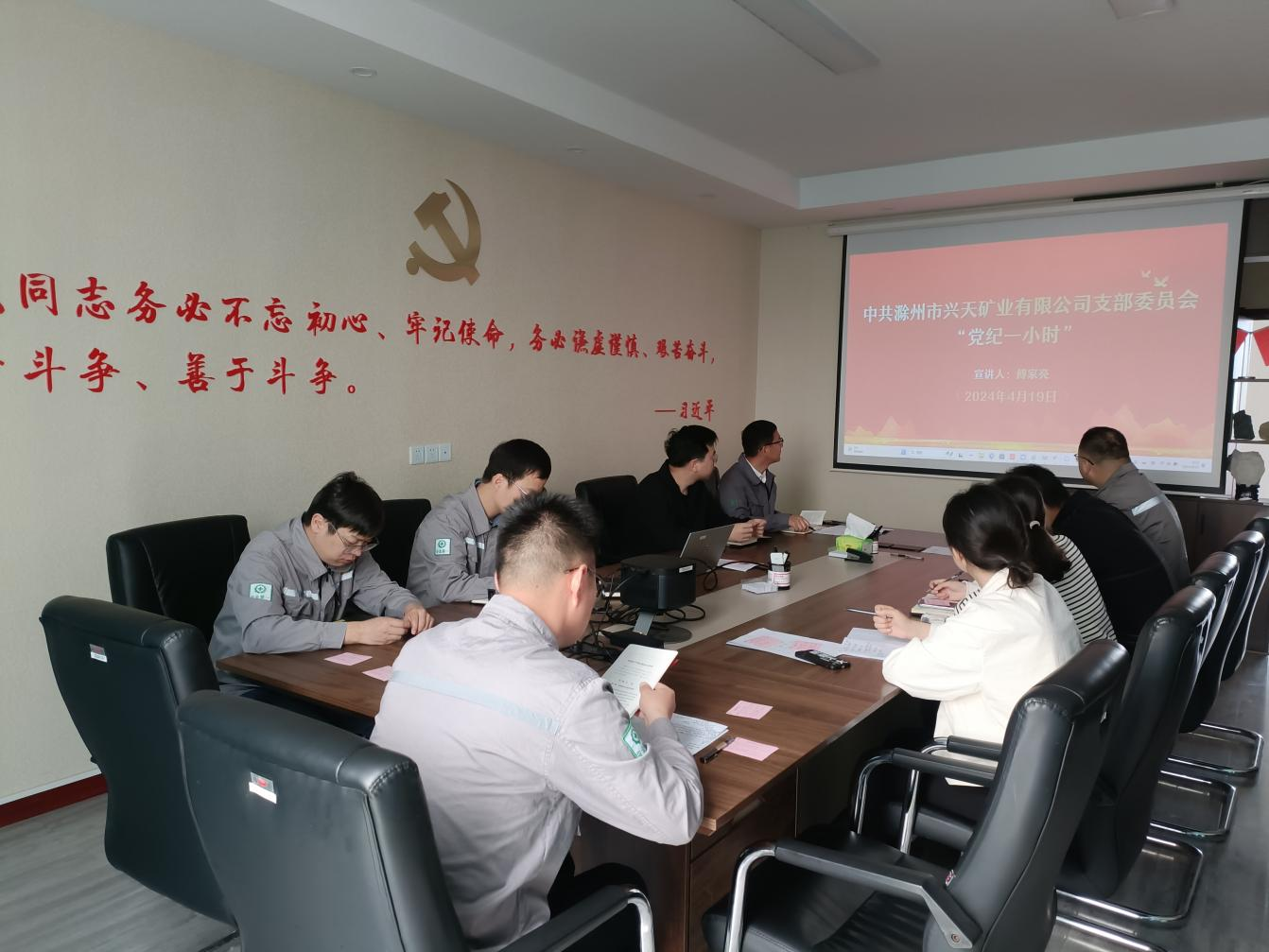 為扎實(shí)開展黨紀(jì)學(xué)習(xí)教育工作,4月19日,興天礦業(yè)黨支部組織召開“黨紀(jì)一小時”活動,支部紀(jì)檢委員傅家亮同志為參會人員深入解讀新修訂的《中國共產(chǎn)黨紀(jì)律處分條例》。
