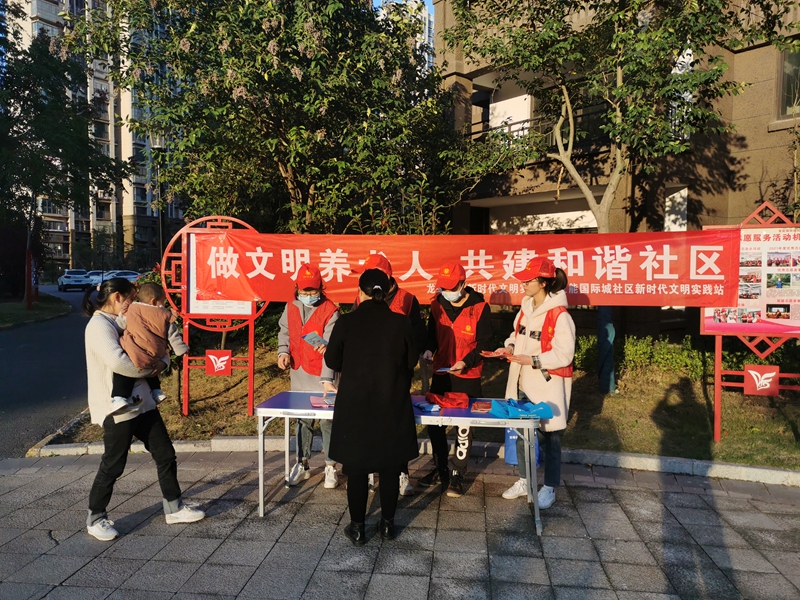 志愿者向社區(qū)群眾宣傳文明養(yǎng)犬、《滁州市文明行為促進條例》、《滁州文明16條》(2.0版)、《滁州市民公約》等內(nèi)容,引導(dǎo)群眾駕乘電動車佩戴頭盔,厲行勤儉節(jié)約,反對鋪張浪費,養(yǎng)成文明健康綠色環(huán)保的生活方式,樹立文明新風尚,爭做文明有禮滁州人。