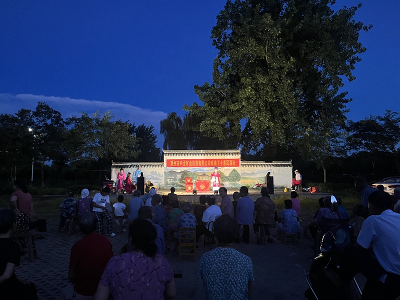 活動(dòng)期間,興全礦業(yè)共在礦區(qū)周邊草庵村、孫家村組織4場(chǎng)戲劇演出,觀看村民500余人。演出現(xiàn)場(chǎng),老戲迷們?cè)缭绲卦趹蚺_(tái)前占好位置,一邊津津有味地看戲,一邊還不時(shí)地跟著哼唱。演員們的唱腔純正圓潤(rùn),唱姿拿捏到位,精湛專業(yè)的表演贏得了在場(chǎng)群眾的陣陣掌聲,為現(xiàn)場(chǎng)觀眾帶來了精神上的藝術(shù)享受和視覺上的“文化盛宴”。